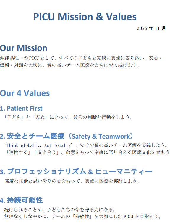 2025年12月 PICU Mission & Values を改訂しました。
